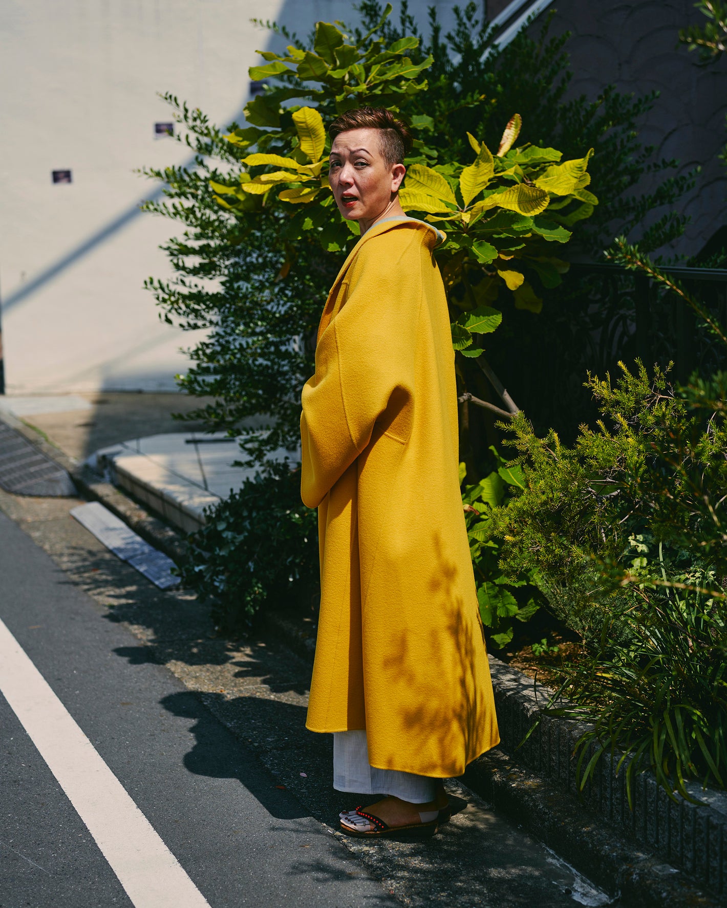 ラテン語で「女優」を意味する Mimaが提案する「女優コート」広い袖とゆったりとした蹴回し 計算し尽くされたショルダーラインが特徴 年齢を選ばない それぞれの体型に合うパターンで どんな着こなしにも合わせられる 和洋兼用の万能コートです